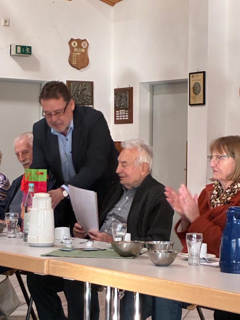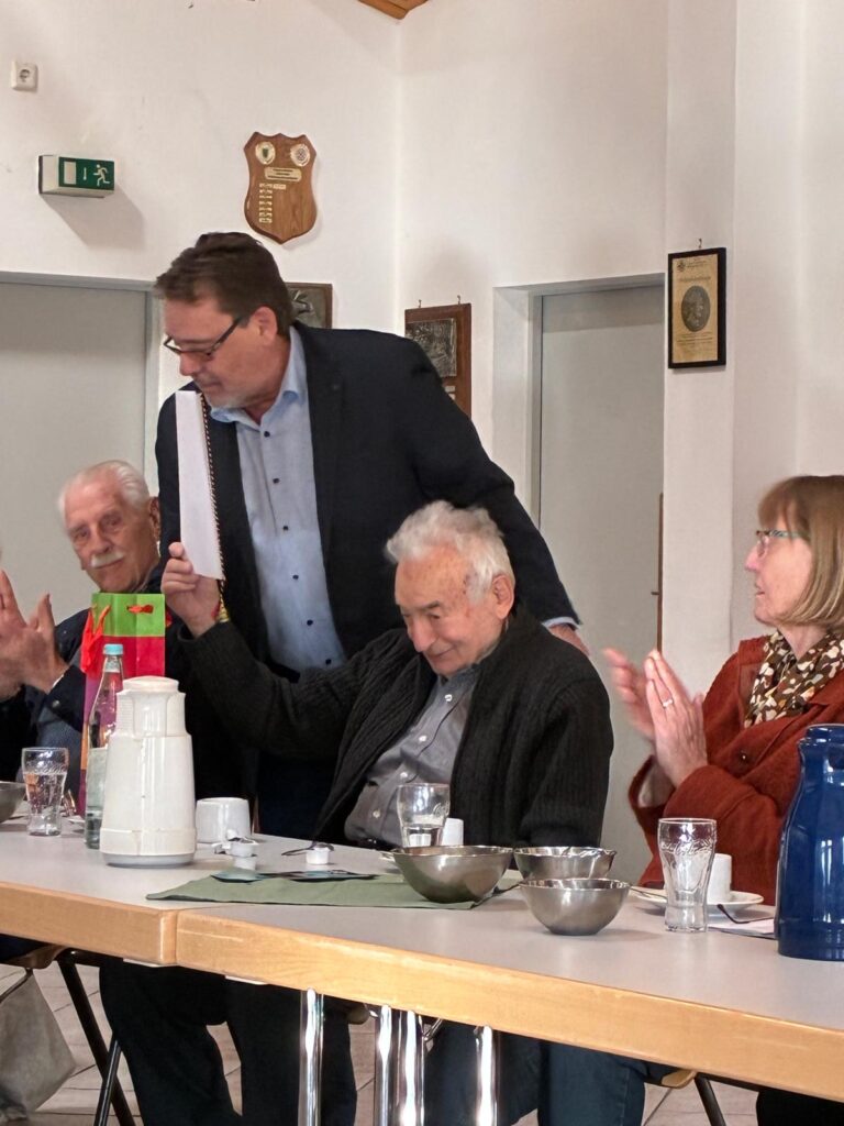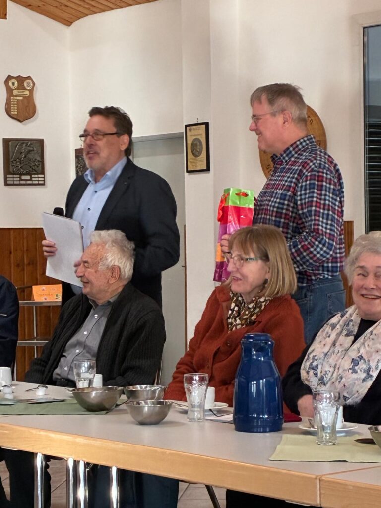 Im nachfolgenden Bericht des Vorsitzenden bedankte sich der Vorsitzende beim Vorstand für die vielfältige Unterstützung. Die SU hat z.Zt. 81 Mitglieder, man traf sich 10 mal zur Vorstandssitzung, es wurden 10 Veranstaltungen organisiert und ein Flyer für das 2026/27 wurde an die Mitglieder verteilt. Zudem wurden zwei Mitglieder für 30 Jahre Mitgliedschaft geehrt! Paul Breuer und Georg Dlugos erhielten eine Urkunde und eine Flasche Wein!
